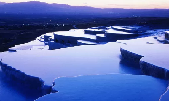 Pamukkale, ili Pamučna tvrđava, kako bi je nazvali na našem jeziku, je jedno on najinteresantnijih mesta na svetu. Očaravajuće lepote geoloških formacija koje su termalni mineralni izvori stvarali milenijumima. Taloženje minerala je stvorilo blistavo bele kaskade, sa malim bazenima, koji odaju utisak kao da su izvajane u ledu. Neopisiv prizor. Efekat vode koja se sliva niz krečnjačke zidove je prelep.