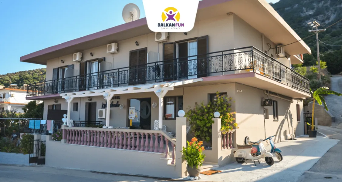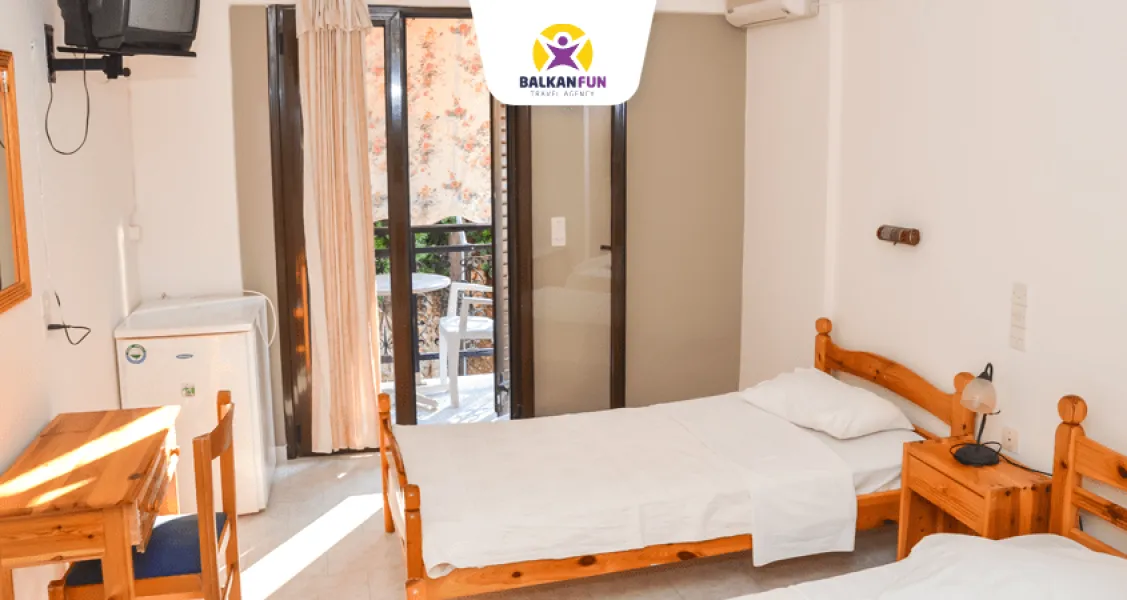 Hotel se nalazi na samo 150 metara od plaže i 500 metara od centralne gradske zone. Svaka soba poseduje klima uređaj (uz doplatu), mini frižider i terasu. Objekat krasi prelepo dvorište i lobi hotela, a gosti mogu koristiti i besplatan Wi-Fi internet.Prilikom ulaska u sobe obavezan je depozit u iznosu od 10 eura po osobi.